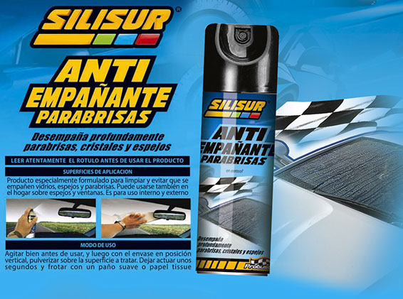 SILISUR Anti empañante es un producto en aerosol desarrollado para evitar el molesto efecto del empañado de parabrisas, espejos y vidrios en general.