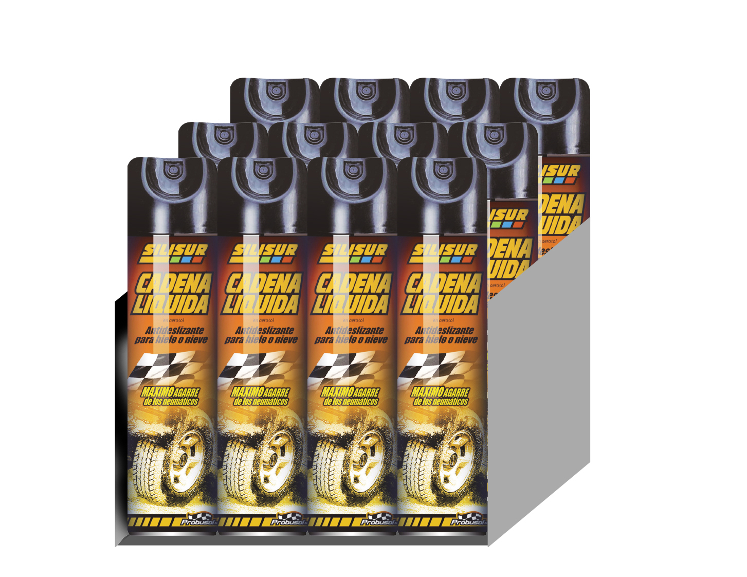 SILISUR Cadena Líquida en aerosol y Gatillo. ANTIDESLIZANTE CON MÁXIMO AGARRE DE LOS NEUMÁTICOS SOBRE HIELO Y NIEVE