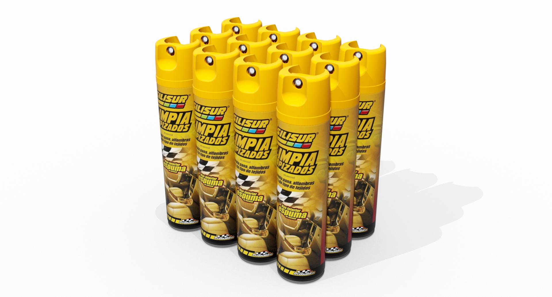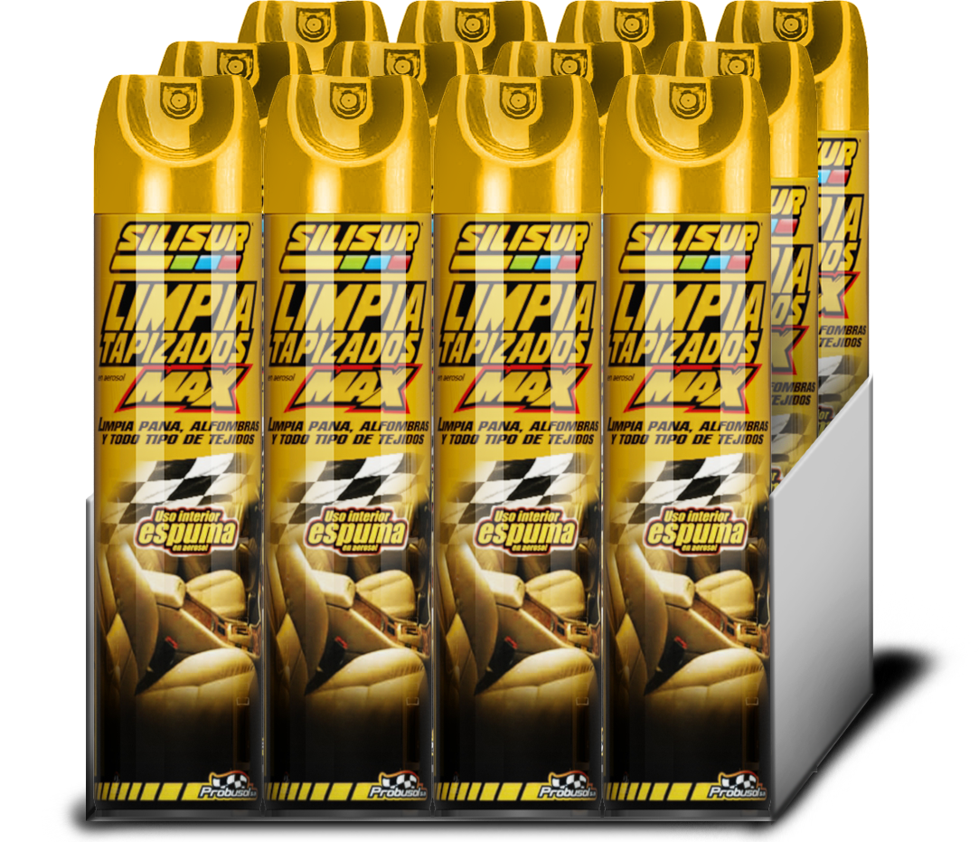 SILISUR Limpia Tapizados limpia pana, alfombras y todo tipo de tejidos. Producto líquido y en aerosol desarrollado con agentes detersivos biodegradables, estabilizados para lograr una espuma consistente y de gran penetración.