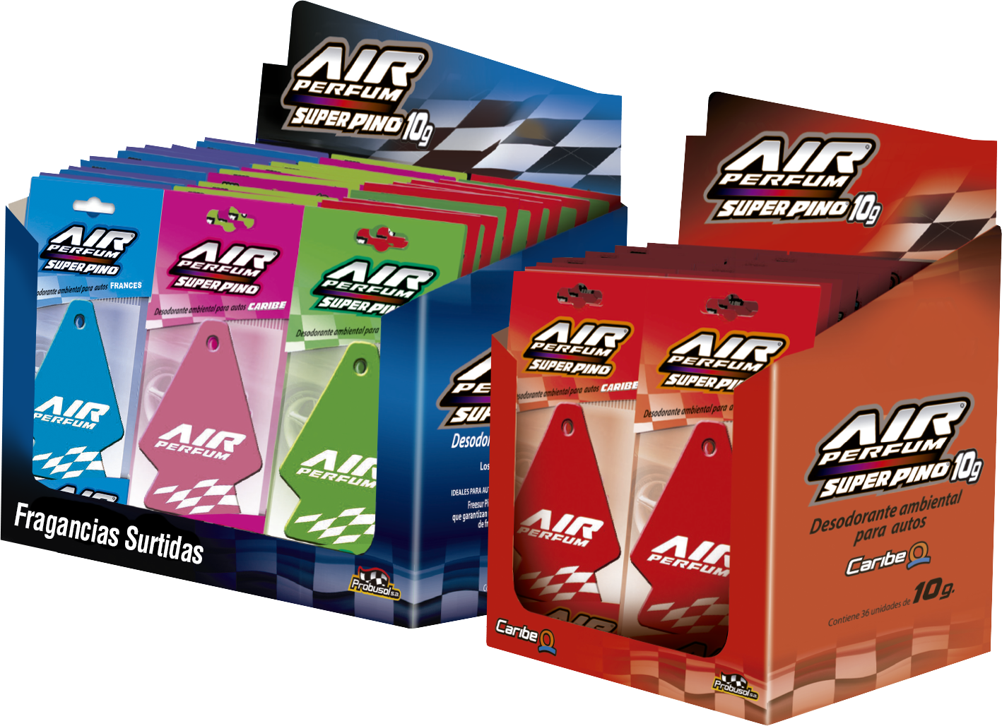 Desodorante ambiental para autos son la perfecta combinación de fragancia y color. De acción continua, estos pinos mantienen intactas sus cualidades de perfume y color por mucho más tiempo. Air Perfum Super Pinos son los originales, los que verdaderamente aromatizan tu auto!!